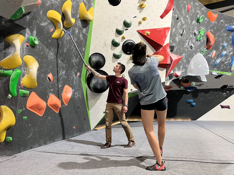 Cet espace, est accessible en tout temps et est dédié à tous ceux qui découvrent l'escalade en bloc, que tu sois un adulte débutant, un enfant ou un accompagnateur curieux. Conçu pour offrir un apprentissage ludique et sécurisé, cet outil est idéal pour s'initier aux bases, prendre confiance et comprendre les gestes essentiels.
